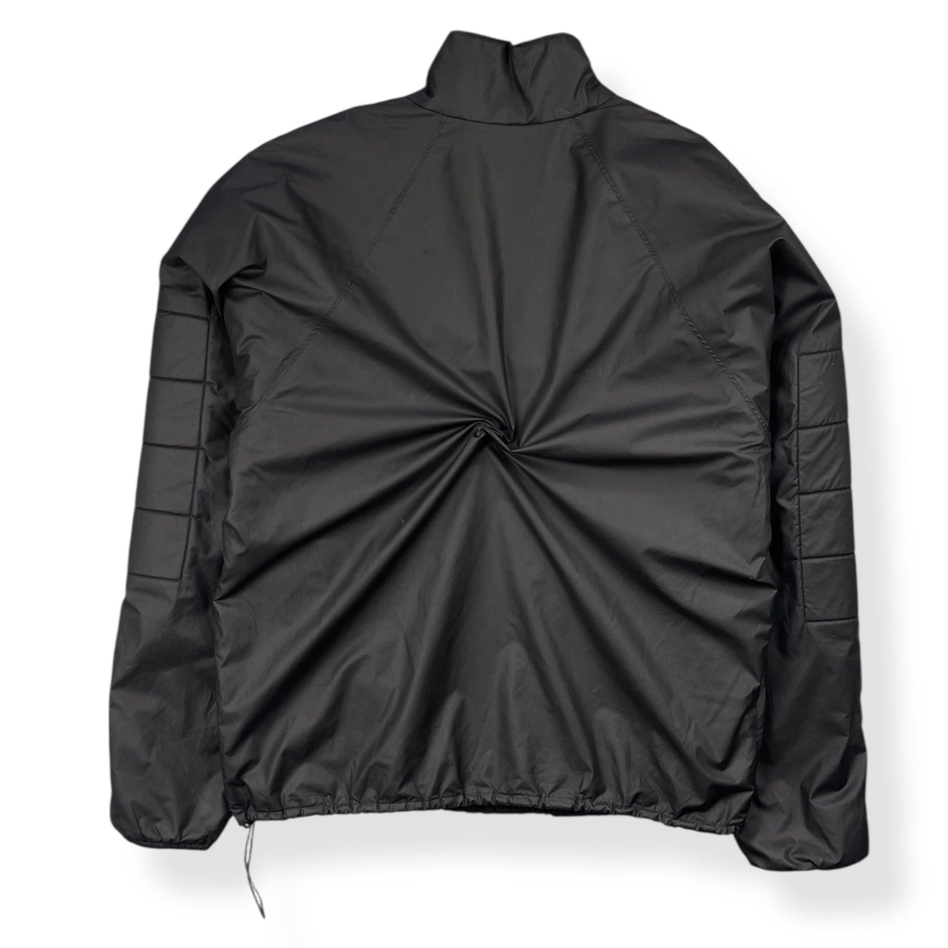 Slightly waxy nylon/cotton blend exterior fabric. With an asymmetric shoulder zip opening, 2 zipped pockets either side of the body, subtle embroidered colourblock logo & a unique padded elbow design with 4 rectangular padded segments for comfort & protection.