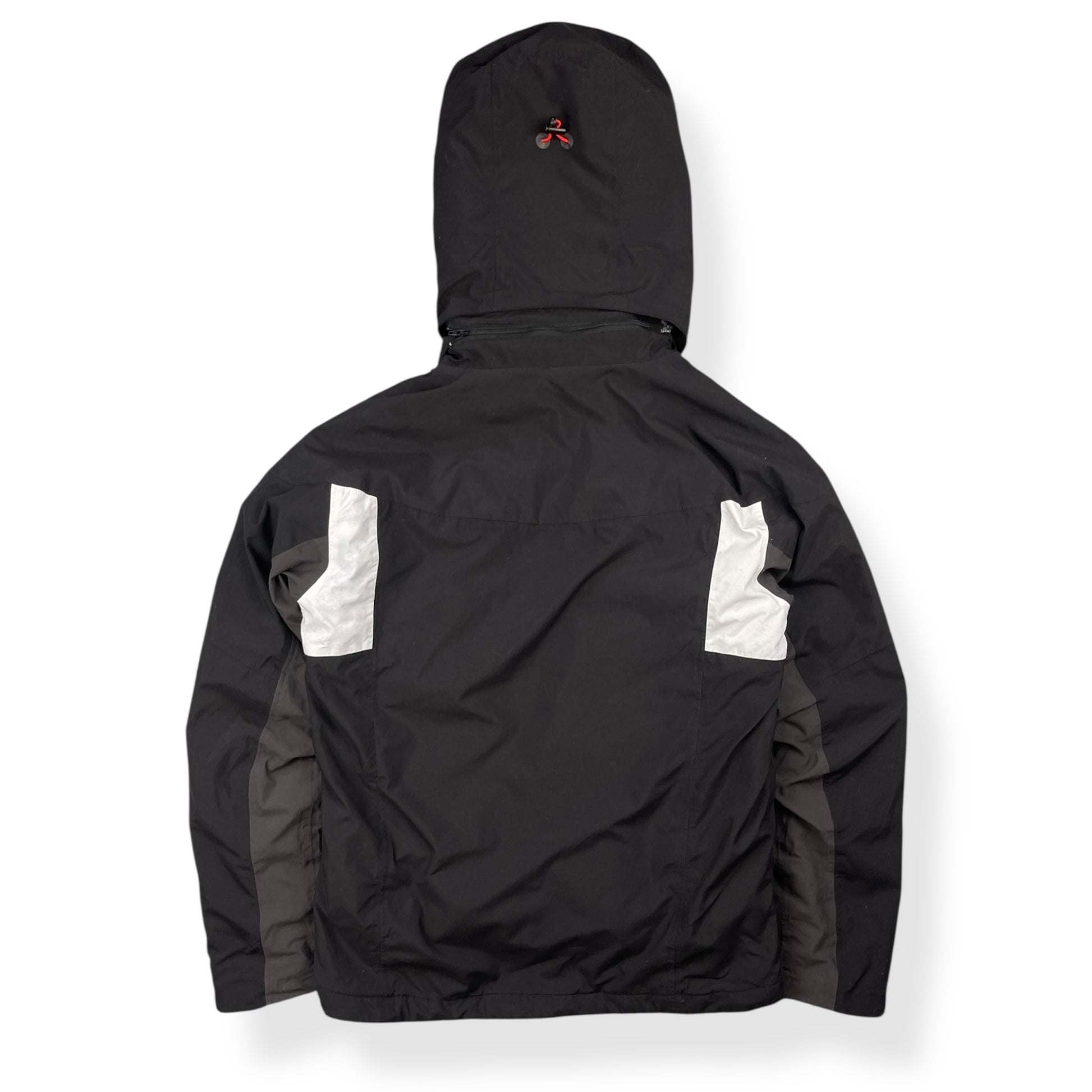 Black/White/Red Colourway. Stash zipped pockets on the chest, elasticated hood/waist hem, soft padded interior with stash zipped pockets & a snow skirt around the waist.