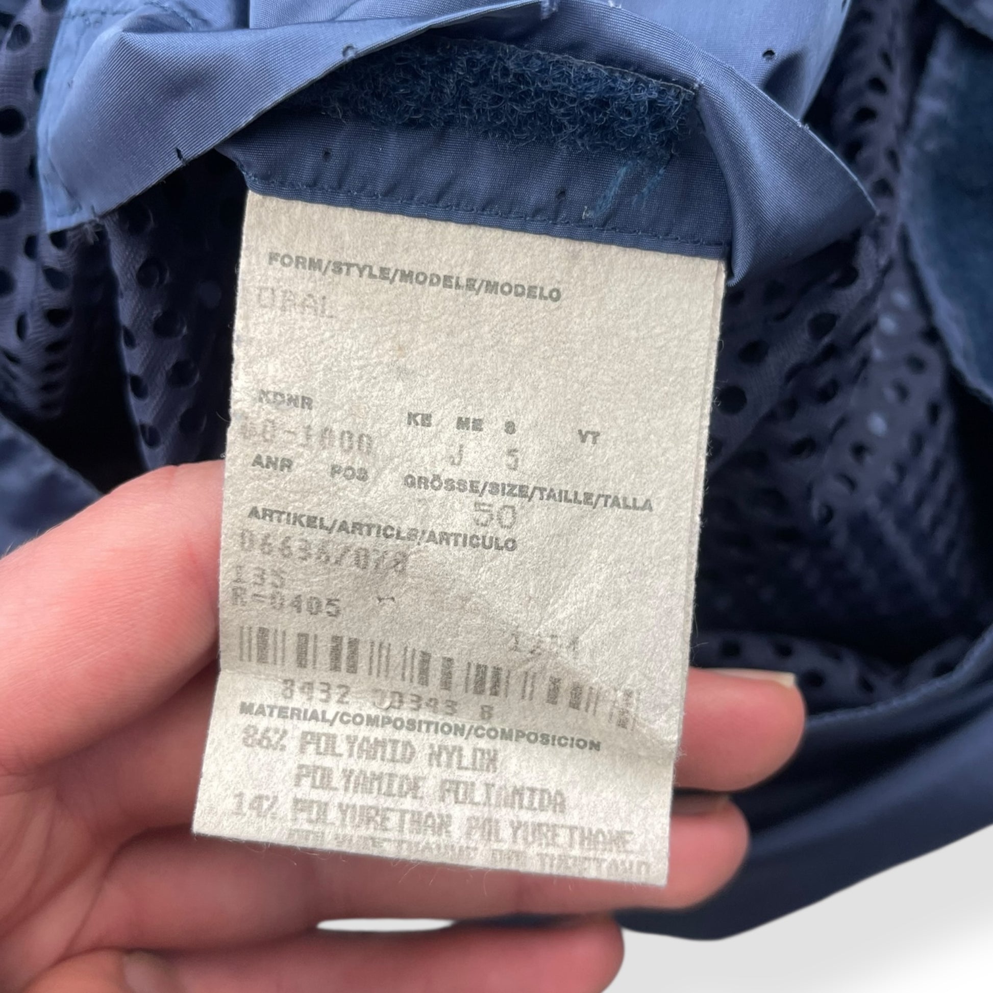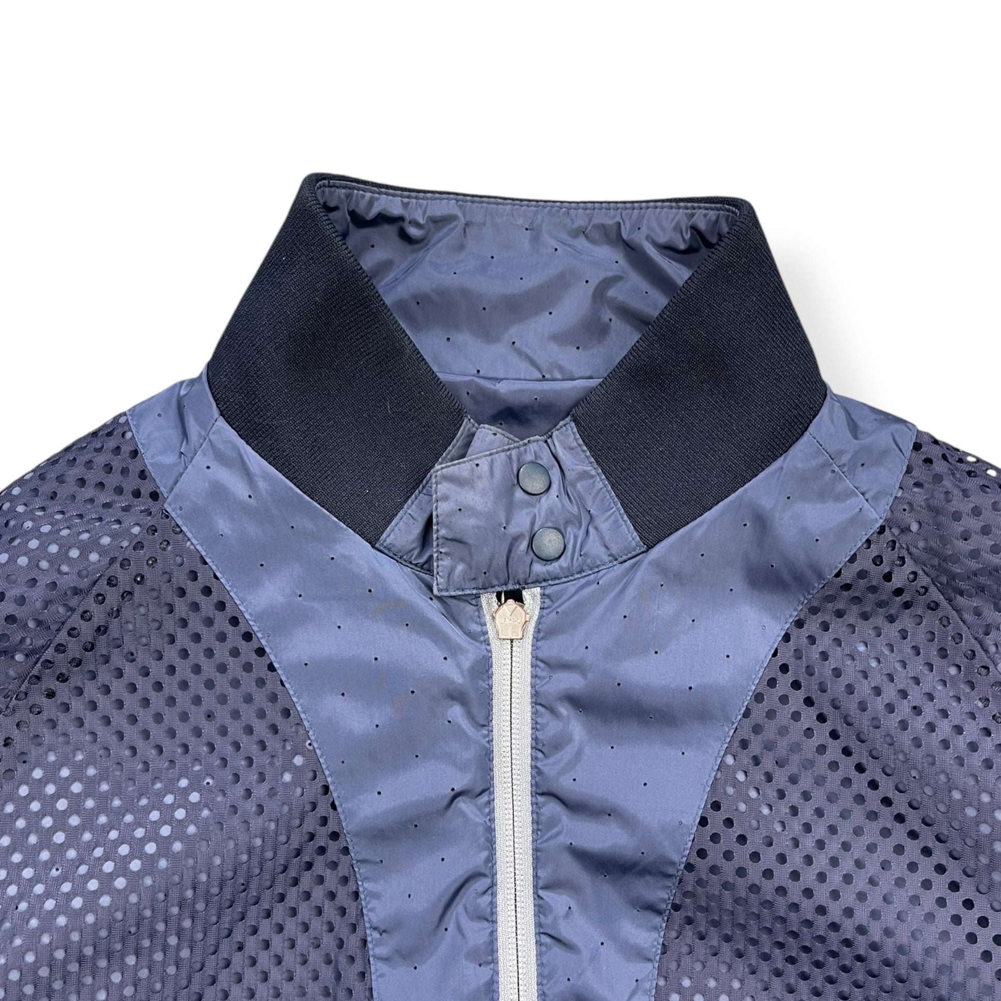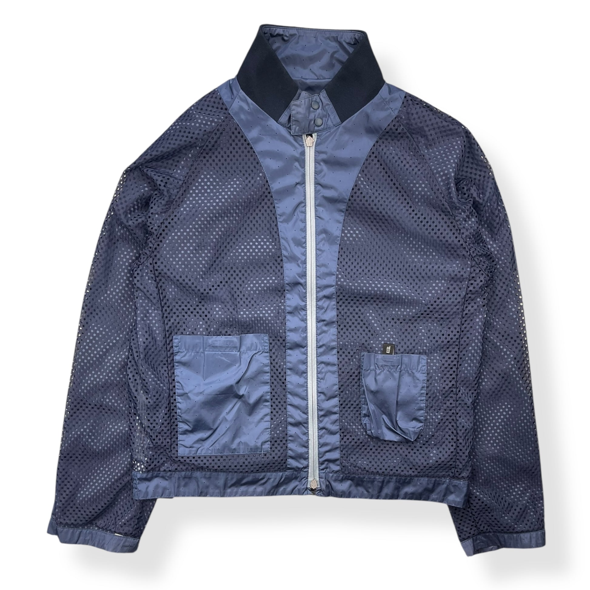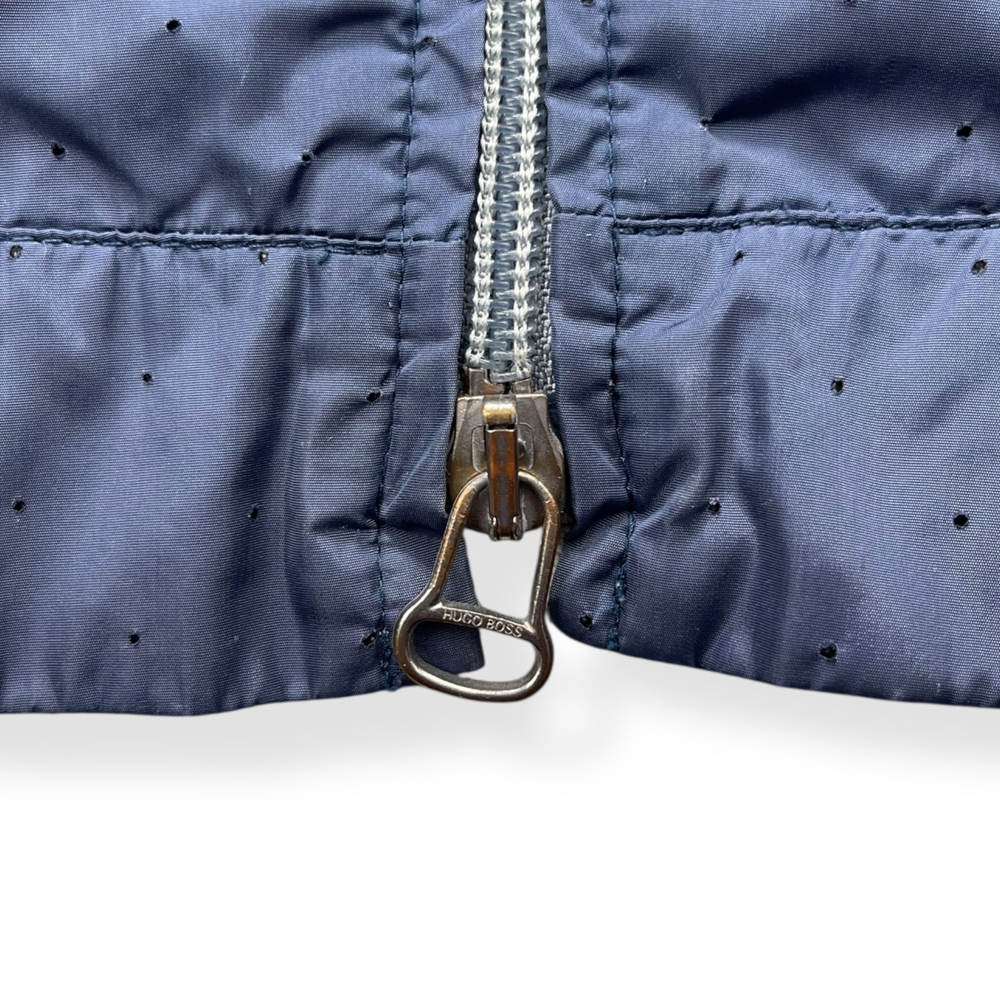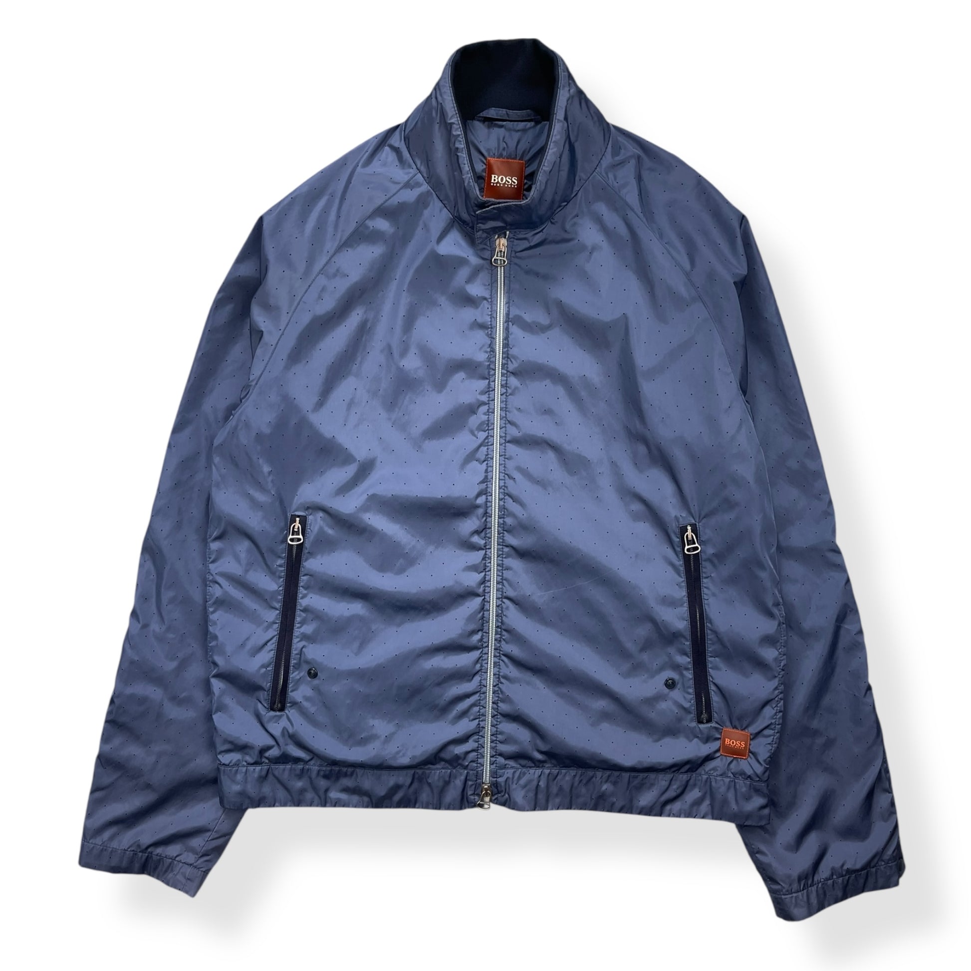 Lightweight, full zip jacket with all over perforation on the exterior & a mesh interior lining. There are 2 exterior zipped pockets, a large interior velcro pocket & mobile phone pouch. Two way zipper, with branded metal Lampo zippers, buttoned/expandable cuffs, velcro adjusted waist hem & side of body ventilation zips exposing the interior mesh lining. From the Boss Orange line that began in 1999 & was an urban-influenced range, using quality materials but in a more casual style than the main line.