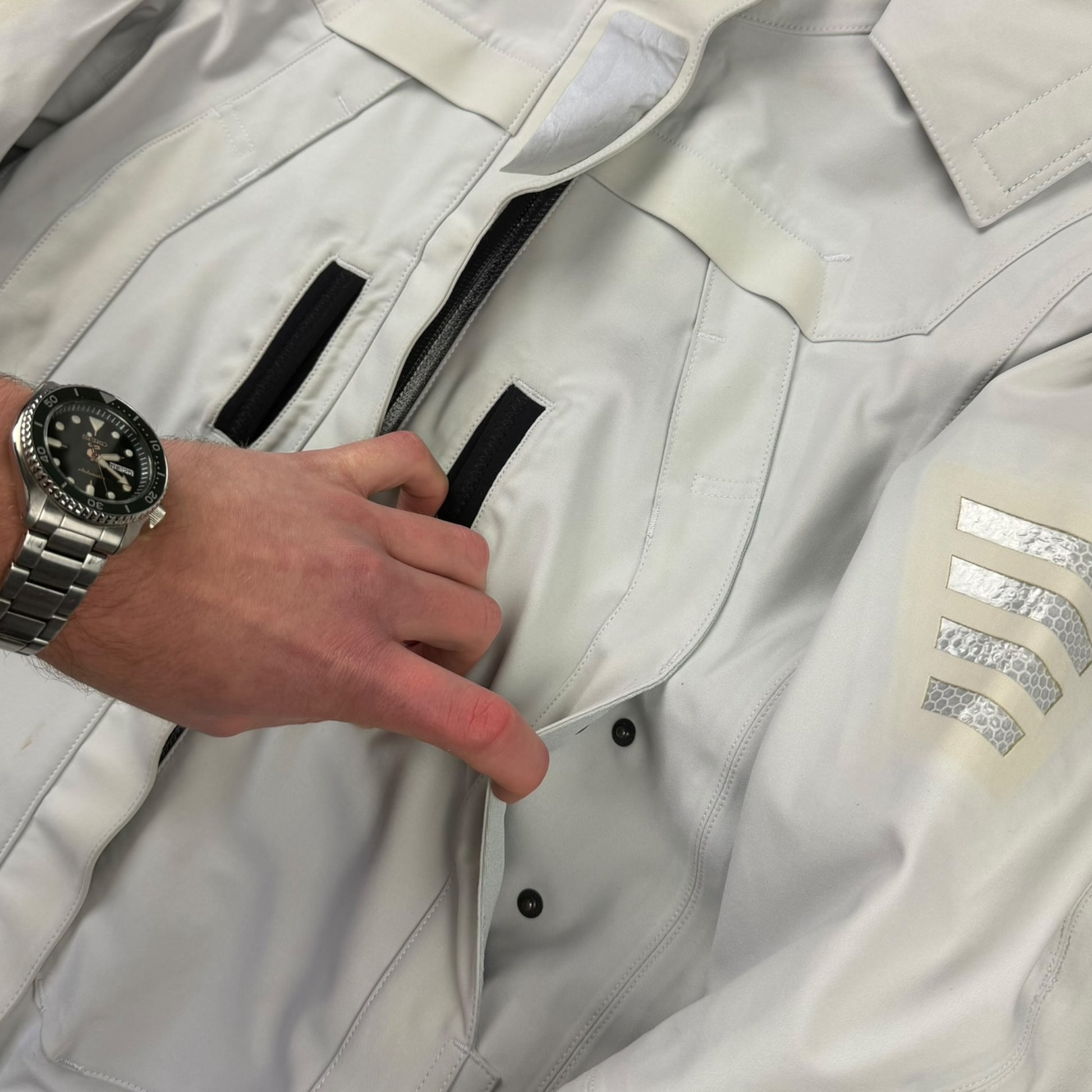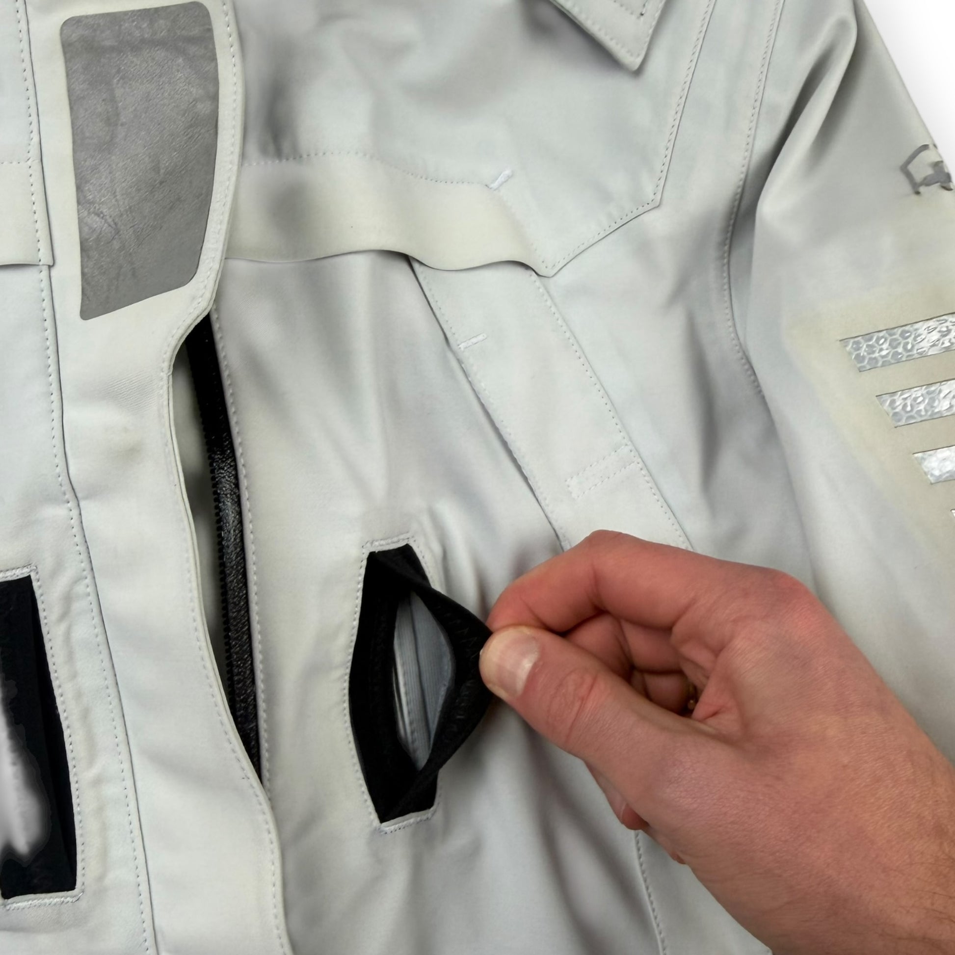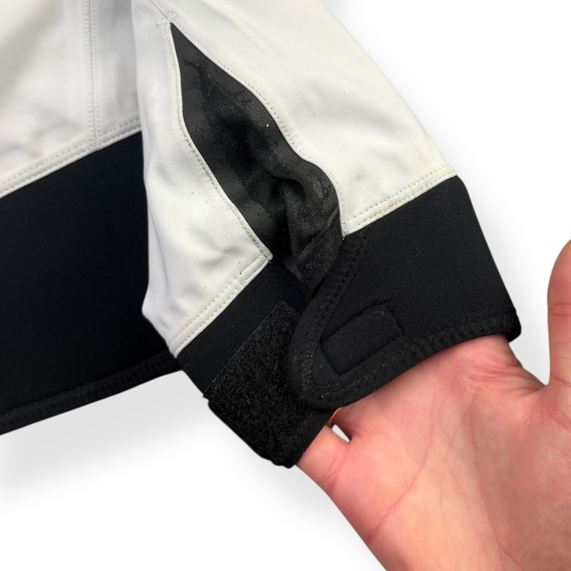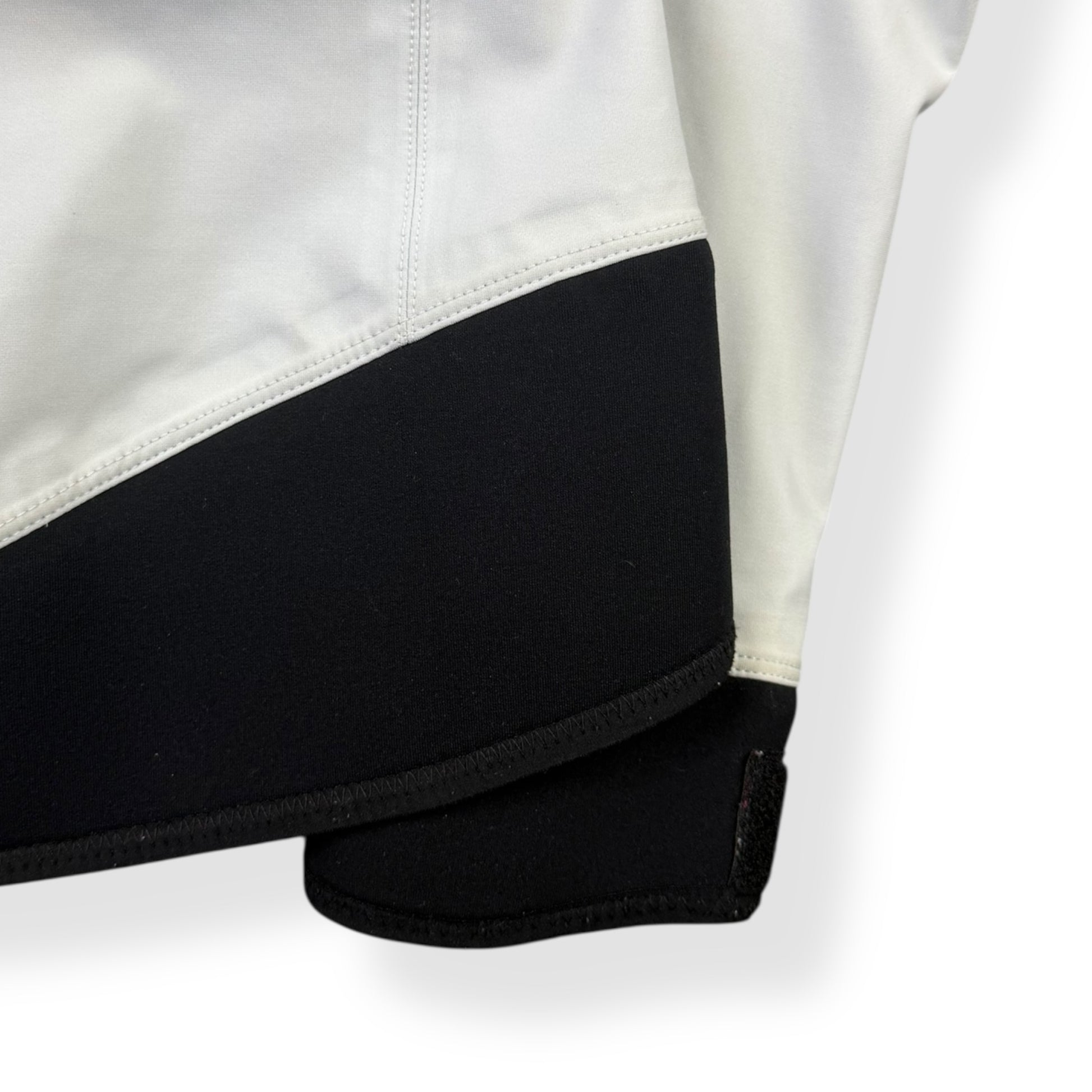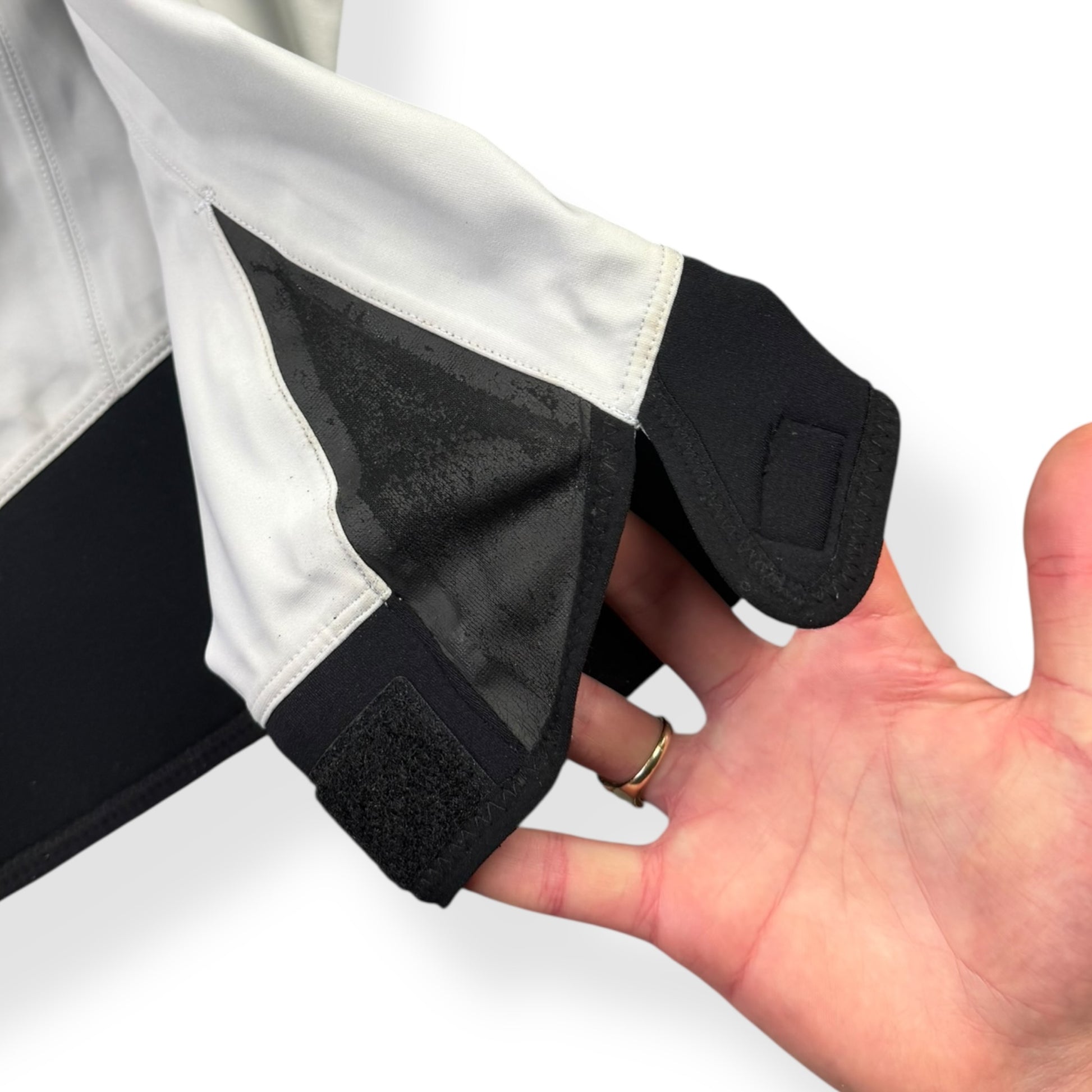 White/Black colourway with reflective panels on the hood & chest. High quality construction with fully taped seams, neoprene cuffs & waist hem for comfort/movement, perforation in the hood so you can still hear your surroundings with the hood up, also has perforation across the back for ventilation & a zipped pouch pocket on the interior.