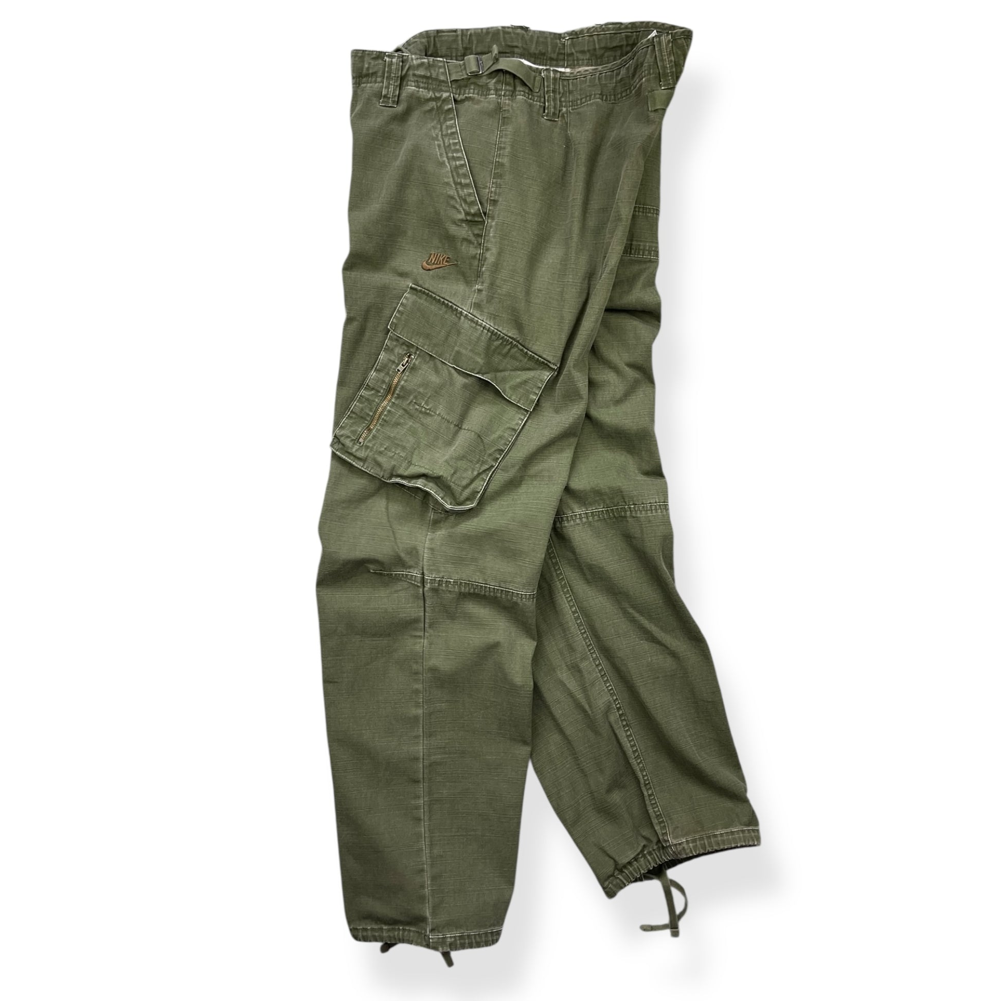 Faded khaki green colourway, 6 total pockets, including a large cargo pocket, baggy fit, embroidered logo & adjustable ankle hems & waist.