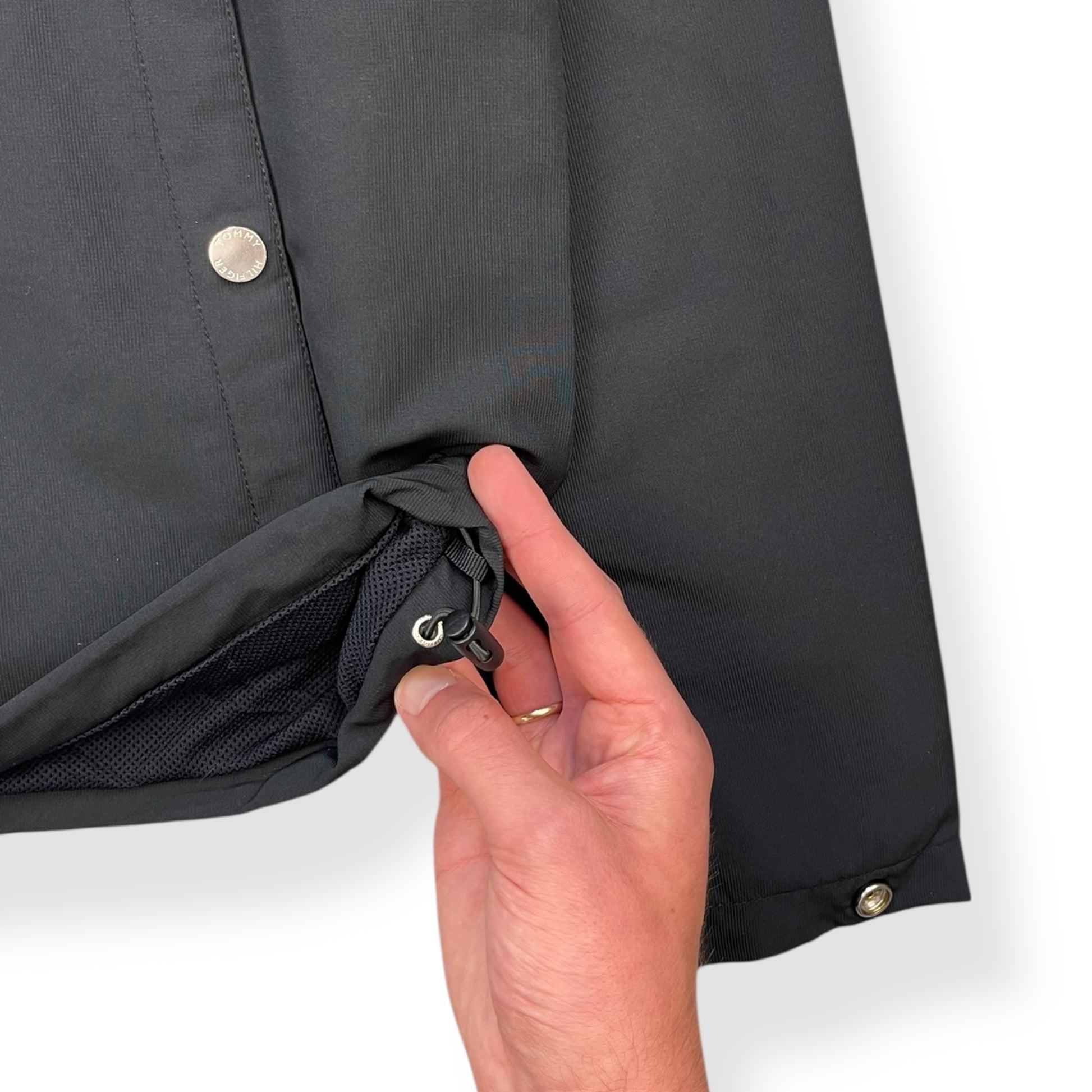 The Men's Golf apparel line began in 1994, 10 years later in 2004, it was released in Europe. Sleek style & construction, can be worn as a jacket or a gilet, contrasting white zipper teeth, metal button poppers on the pockets & elasticated waist hem.