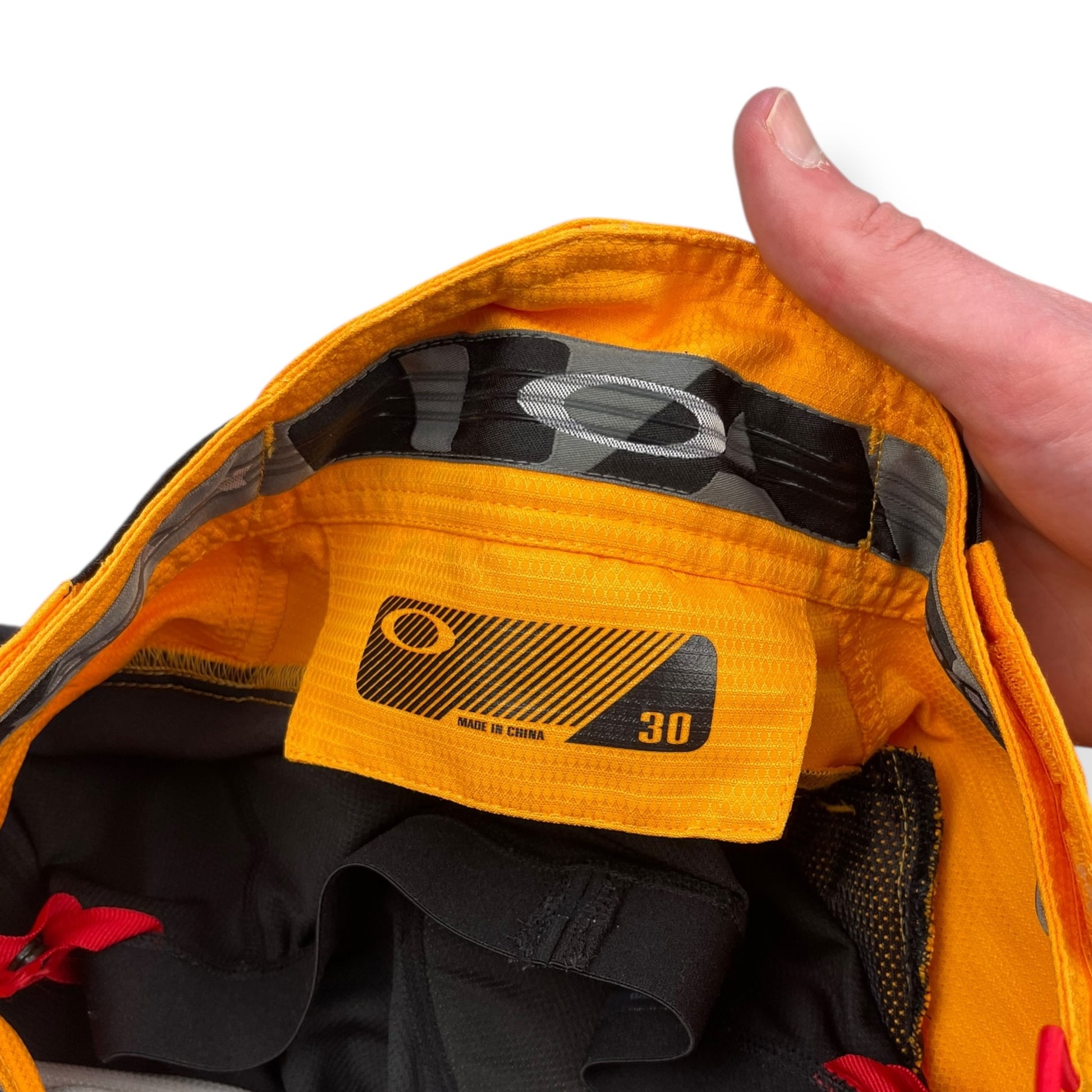 Orange/grey/black colourway. Elasticated waistband, stash velcro pocket.