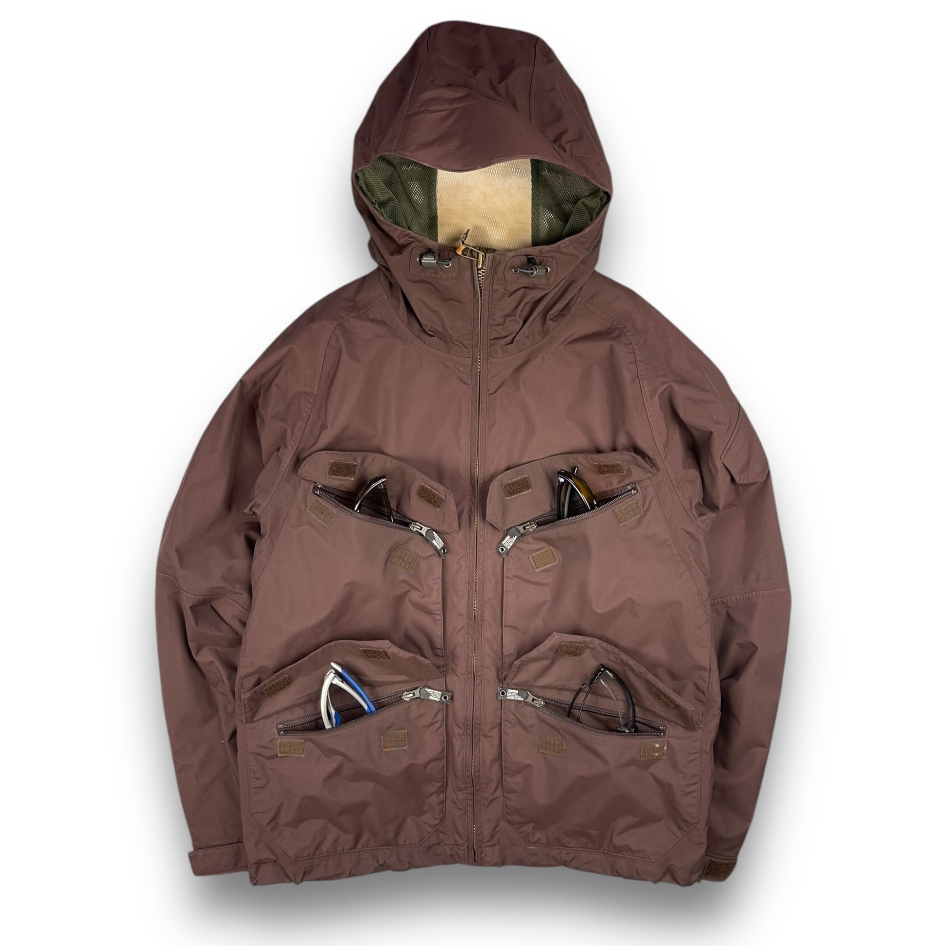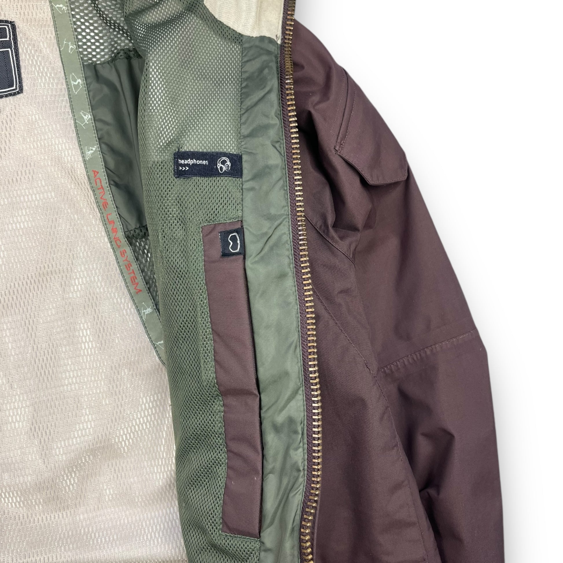 Features 4 front zip pockets, peaked & elasticated hood, elasticated waist hem , stash zip pocket on the arm & designated headphone & ski goggle interior compartments.